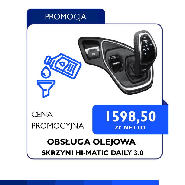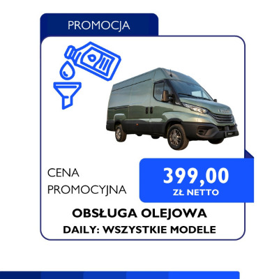 Treści prezentowane na tej stronie internetowej mają charakter wyłącznie informacyjny i nie stanowią oferty handlowej w rozumieniu art. 66 §1 Kodeksu cywilnego. Przedstawione pakiety części serwisowych mają charakter przykładowy i nie odzwierciedlają pełnej oferty promocyjnej. Zalecamy kontakt z autoryzowanym doradcą serwisowym w celu uzyskania szczegółowych informacji o dostępnych rozwiązaniach oraz aktualnych warunkach kampanii. Specyfikacje techniczne i dostępność produktów mogą ulec zmianie bez uprzedzenia. Promocja obowiązuje od dnia ogłoszenia do 31 grudnia 2025 r. lub do wyczerpania zapasów. Promocja skierowana jest wyłącznie do przedsiębiorców w rozumieniu art. 43¹ Kodeksu cywilnego. Iveco Poland sp. z o.o. nie ponosi odpowiedzialności za decyzje podejmowane wyłącznie na podstawie informacji zawartych na stronie internetowej. Wizualizacje produktów mają charakter poglądowy – rzeczywisty wygląd i parametry techniczne mogą się różnić.